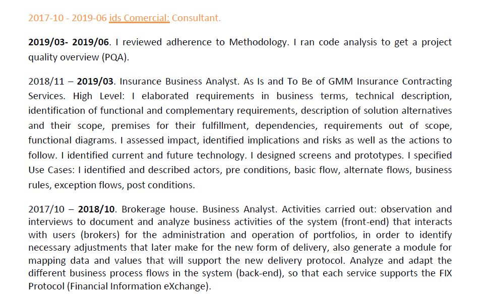 Professionally as an IT consultant, my profile is horizontal, which allows me to adapt to any role in the systems creation cycle, for example: